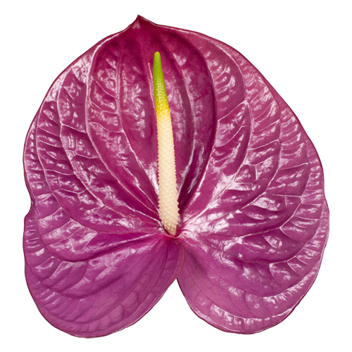 - Vernieuwende, paarse snijanthurium met hartvormige bladeren;